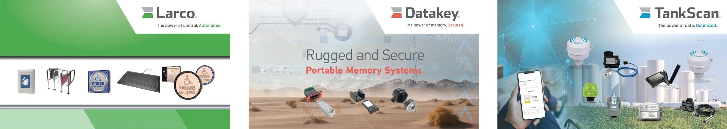 Larco, Datakey, and TankScan are 3 of the brands under ATEK Access Technologies. Larco offers a range of durable industrial and safety mats, along with automated sensors and push-plate switches. Datakey specializes in secure, rugged portable memory systems designed for demanding embedded applications. Additionally, TankScan provides wireless tank monitoring, allowing users to remotely check fluid levels via computer or smartphone.
